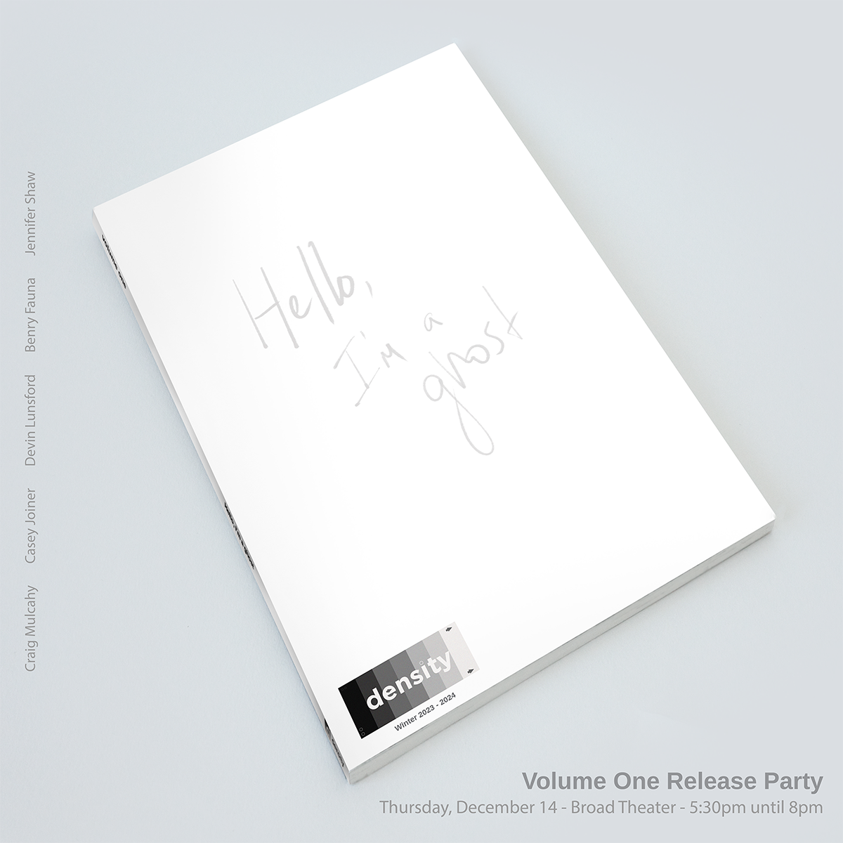 In partnership with the PhotoNOLA Festival and Art Span NOLA, we invite you to celebrate the official release of "Hello, I'm a ghost" at The Broad Theater on Thursday, December 14th. This free event will run from 5:30 PM to 8:00 PM, offering you the opportunity to meet the photographers, discuss their work, and purchase a magazine.